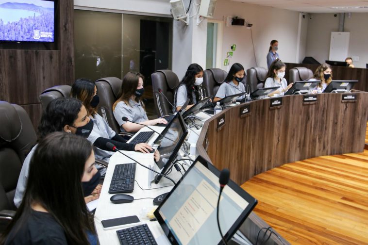 Os vereadores mirins de Balneário Camboriú fizeram sua reunião ordinária de agosto na tarde desta quinta-feira (19), no plenário Vereador Walter Eilers. Na ocasião, os estudantes discutiram e aprovaram a moção e as dez indicações que estavam na pauta, além de uma moção e duas indicações que foram incluídas na Ordem do Dia (leia a relação completa aqui).
